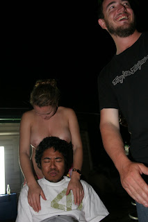 The winner of the raffle, getting his prize, we have alot more explicit photos than this, but there might be kids looking at this shit....sorry.